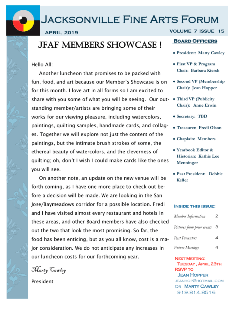 October 13, 2019November 25, 2019 jaxfineartsforum April 2019 Newsletter o-april-2019Download Share this: Share on X (Opens in new window) X Share on Facebook (Opens in new window) Facebook Like Loading... Related