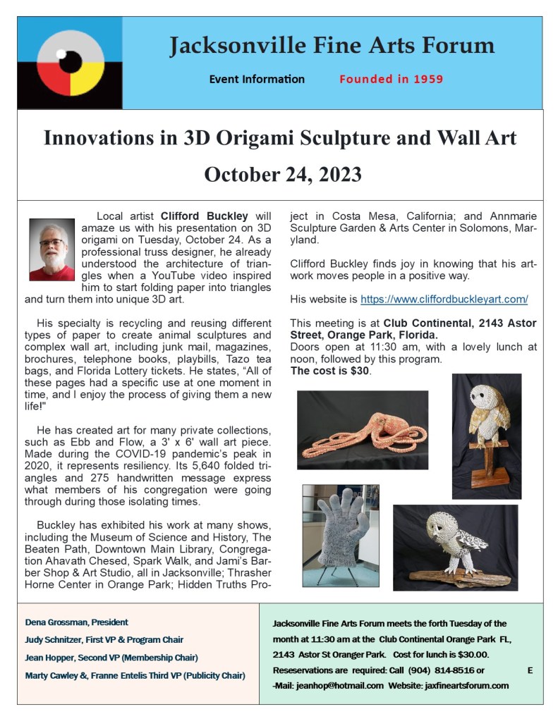 October 28, 2023 jaxfineartsforum OCTOBER 2023 Share this: Share on X (Opens in new window) X Share on Facebook (Opens in new window) Facebook Like Loading... Related